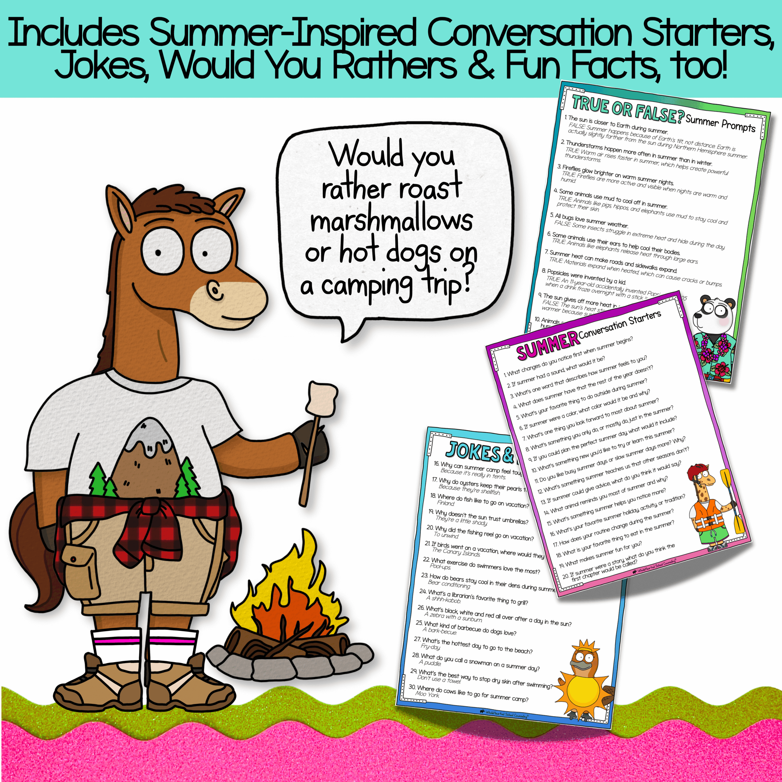 This classroom mascot kit makes it easy to bring summer energy, playfulness, and motivation into your classroom in an organized way, without tons of extra prep. It fits naturally into your daily routines and works well for morning meetings, journal writing, small-group discussions, classroom management and community-building throughout not just the summer months, but all year long!