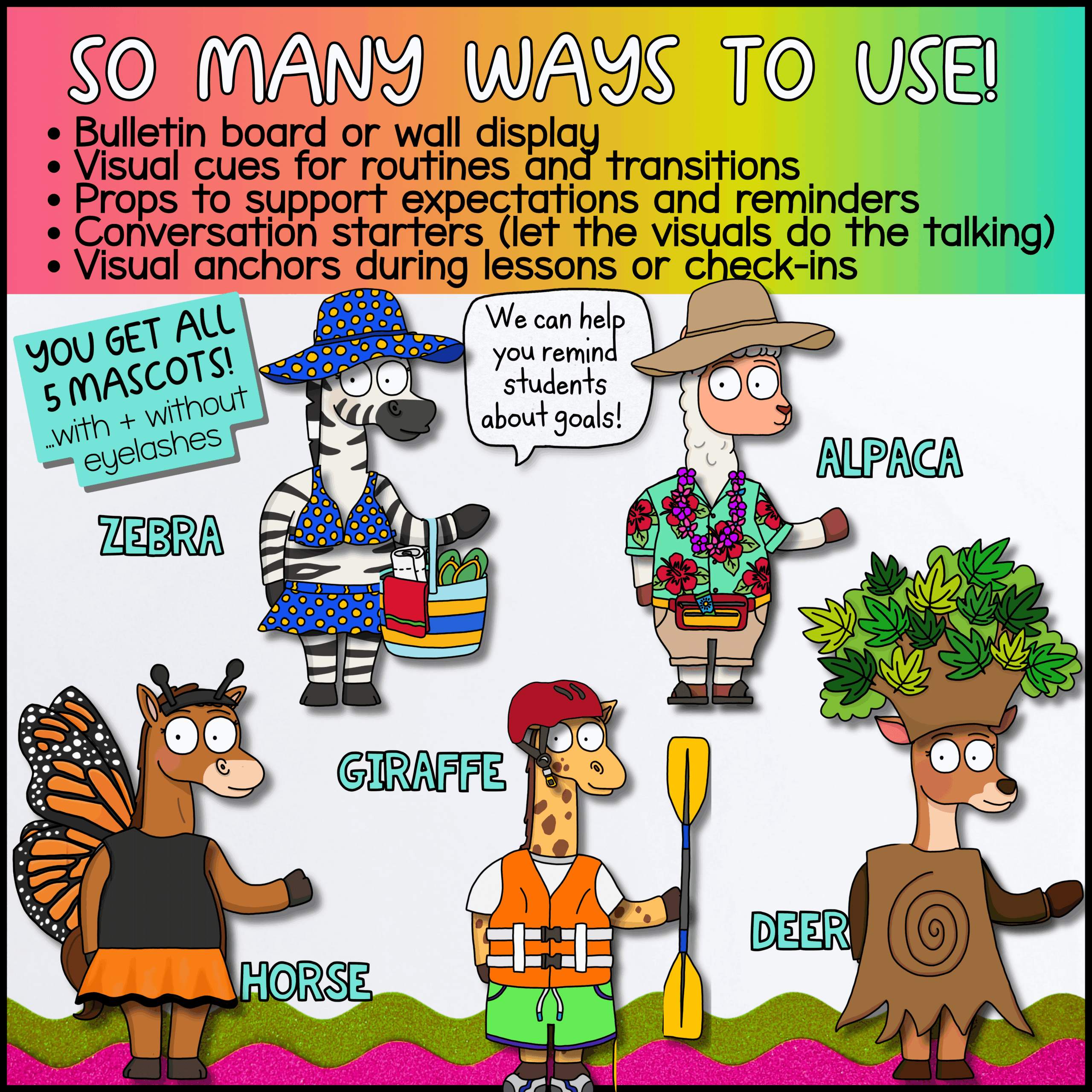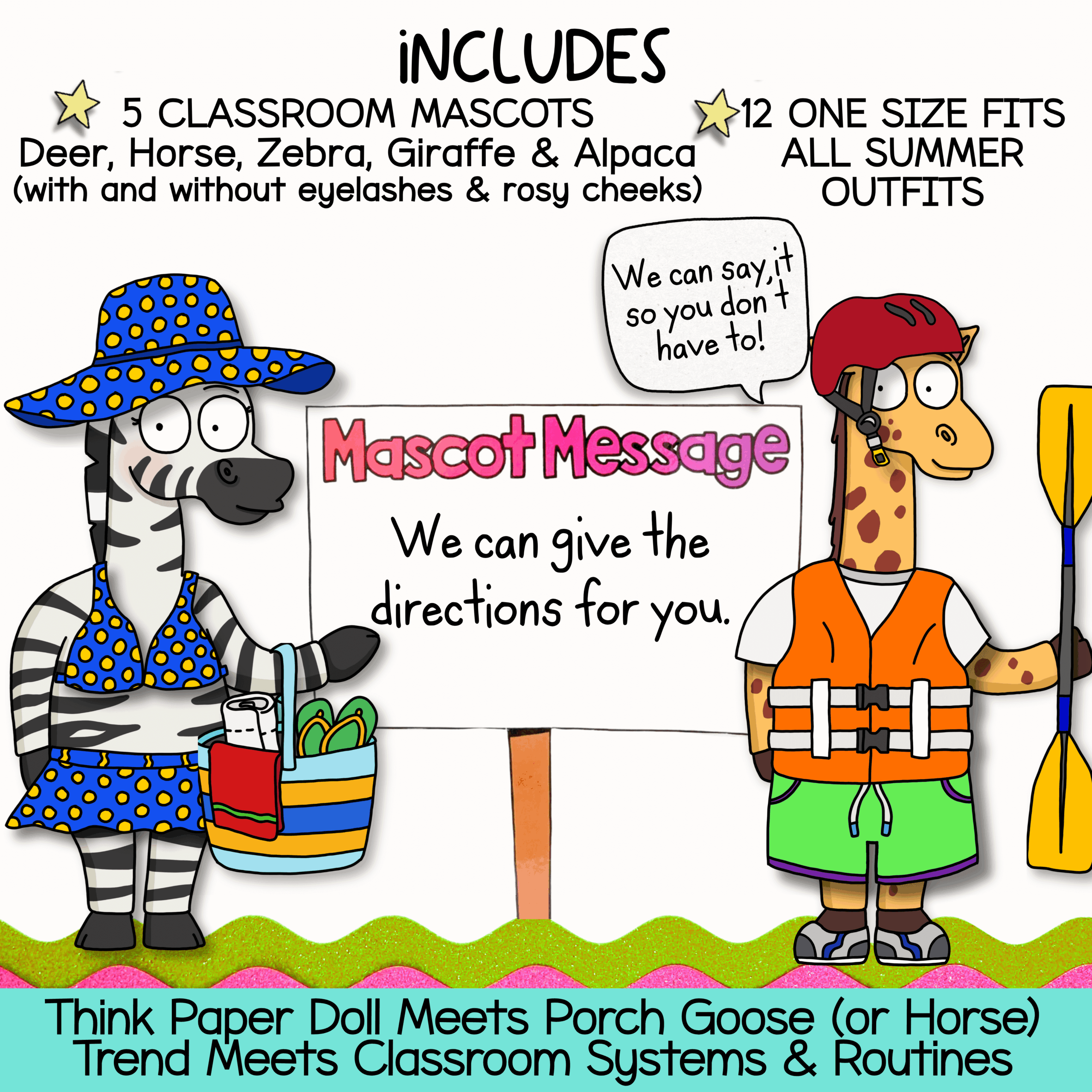 This Classroom Mascot Summer Kit is designed to work with the WholeHearted Critter Crew™ Deer and Friends Mix-and-Match mascot system.