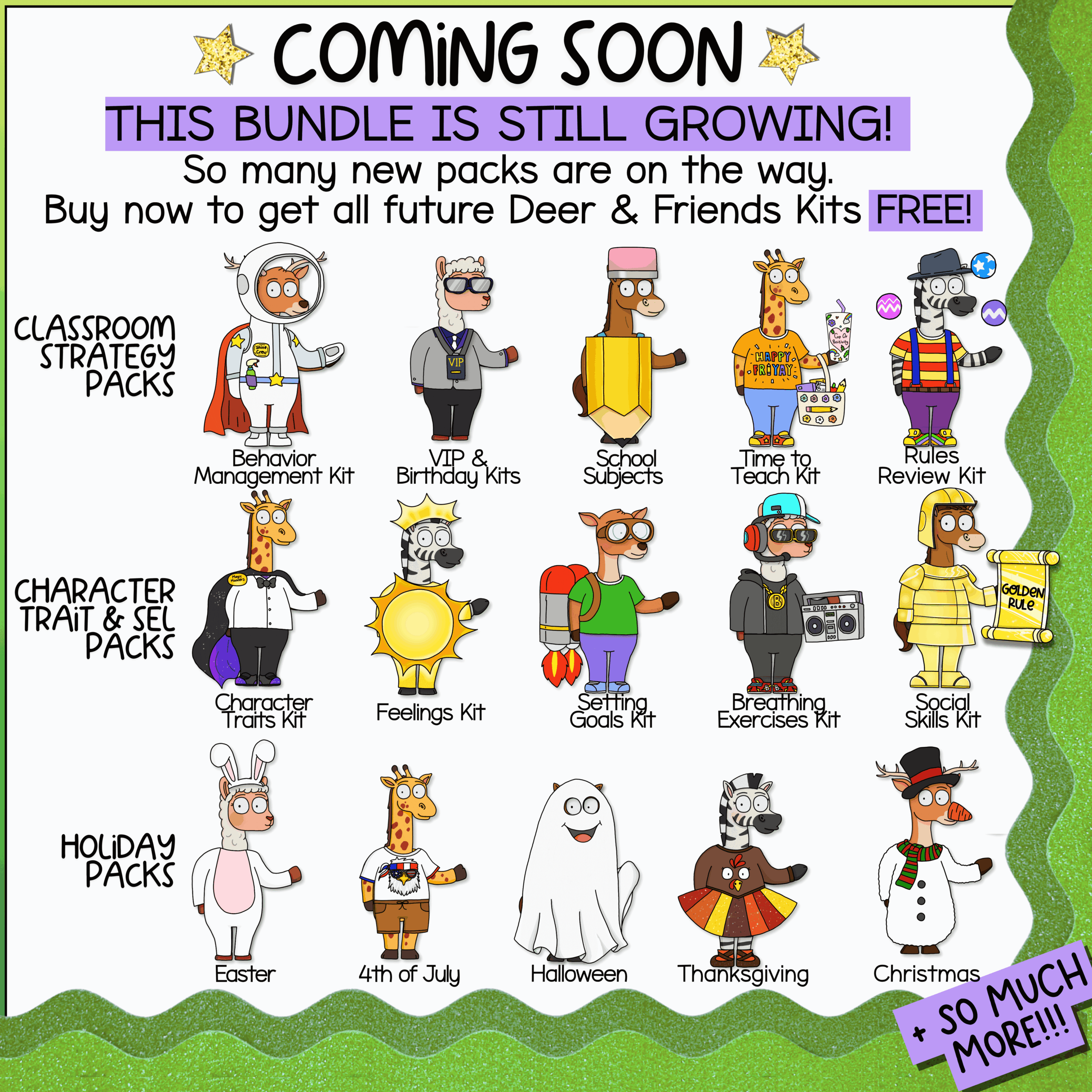 As new costumes, seasonal packs, behavior management tools, conversation prompts, accessories, and character education kits are released, they will be added to your bundle automatically at no extra cost.