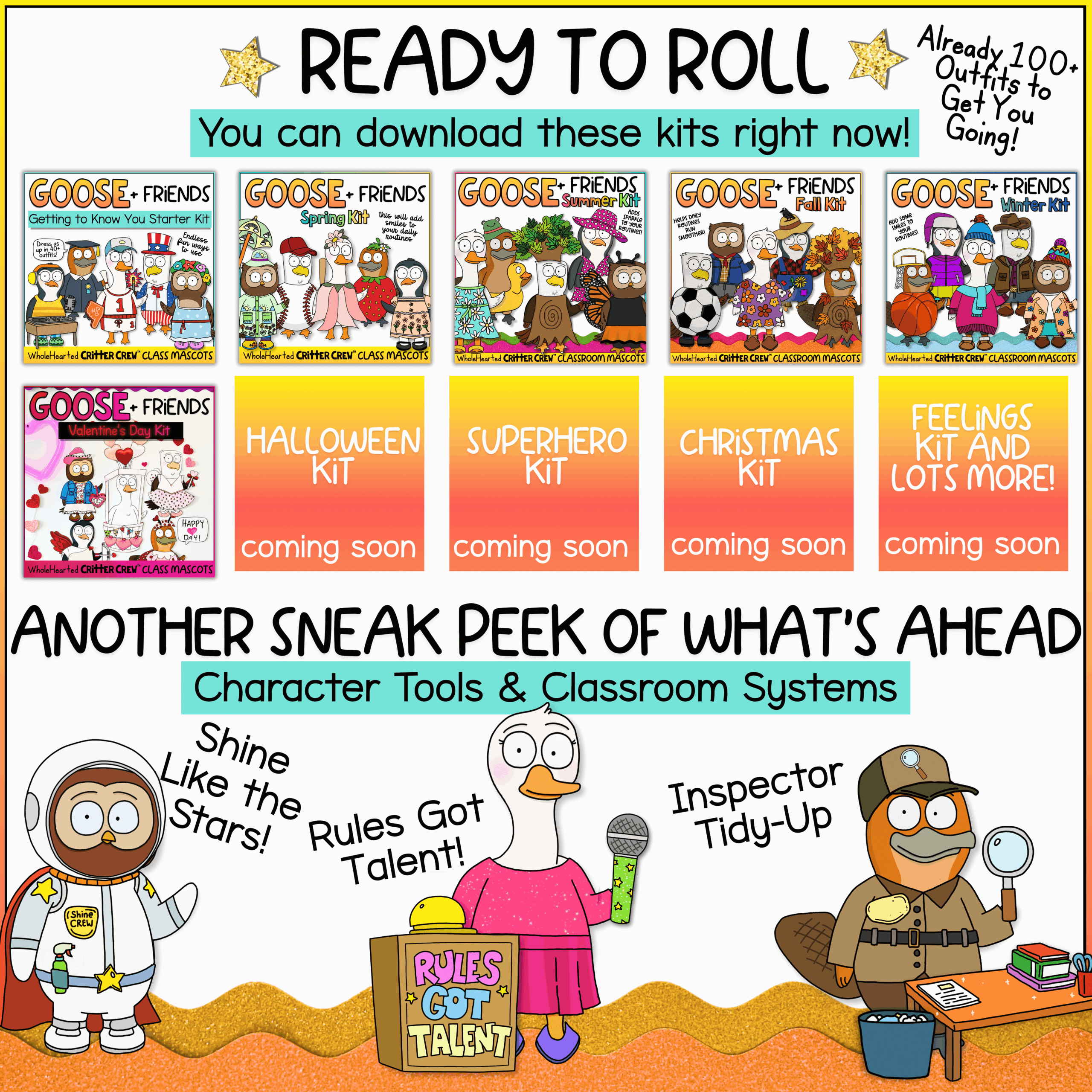 Over 20 themed kits are already in the works, adding 200+ additional costumes, plus accessories, conversation prompts, and printable tools. Each new kit will include an average of at least 10 mix-and-match outfits, along with coordinating extras to keep your classroom mascots fresh and engaging.