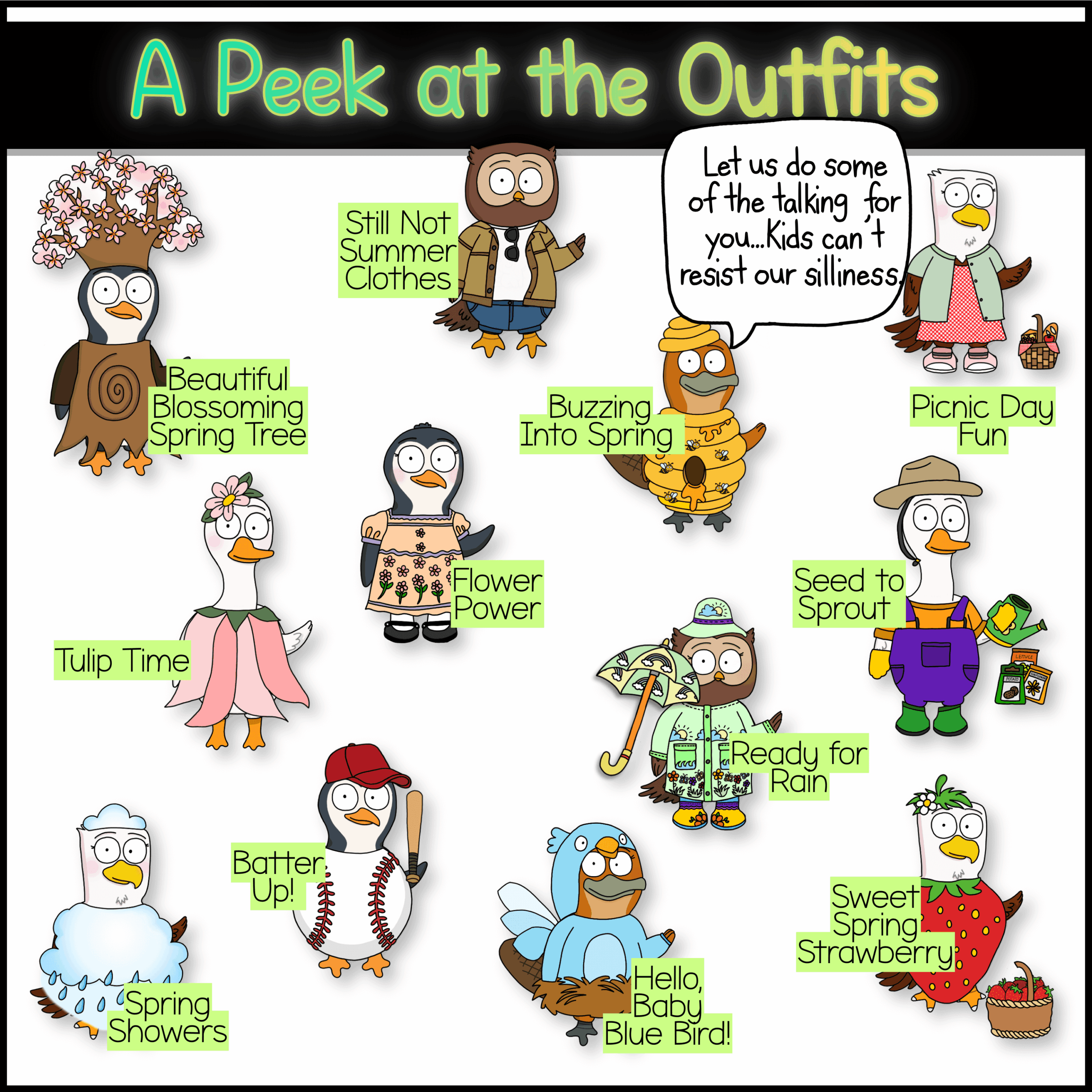 This Classroom Mascot Springtime Kit is designed to work with the WholeHearted Critter Crew™ Goose and Friends Mix-and-Match mascot system.